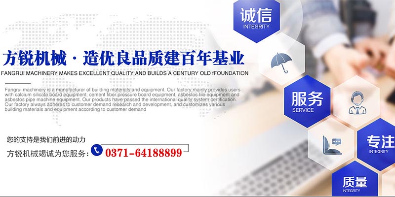 鄭州方銳正和機械制造有限公司在硅酸鈣板設備、水泥纖維壓力板設備、石棉瓦設備和石棉管設備等新型建材領域有豐富的經驗成熟的工藝,公司位于河南省鄭州市鞏義市芝田鎮,多年來,公司匯集了一大批銳意進取并代表著行業水平的管理人員。公司非常重視技術交流與合作,引進了發達的好技術和工藝,在技術本土化的基礎上,我們一直在理性的探索,不斷創新,開發適合客戶需求的新產品。公司秉承以“以人才為根本,以市場為導向,以科技為基礎,以產業為標準、以質量為保證、以世界為目標。”的經營方針力求的設備服務于社會而努力。我公司經過多年不斷的努力,發展壯大,成為國內設備廠家。